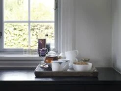 Alfabetkrusene er inspireret af Royal Copenhagens Musselmalet Riflet stel, som er det først stel og er helt tilbage fra 1775. Du kan genkende den klassiske form på højhankskoppen fra 1884.