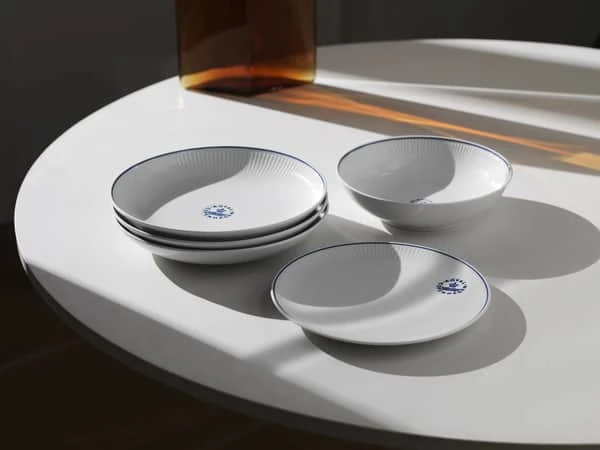 Royal Copenhagens nye serie i 2021, Blueline, sætter scenen for de enkle, men betydningsfulde øjeblikke. Stellet er nemlig helt enkelt, men med et betydningsfuldt stempel fra Royal Copenhagen. Den halvdybe skål er oplagt til portionsserveringer af supper og salater.