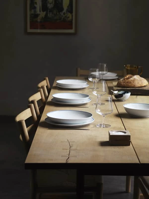 Skab ekstraordinære borddækninger ved at kombinere Blueline med et eller flere af Royal Copenhagens andre stel. Miks med både Hvid Riflet, Blå Mega Mussel eller Blomst. Du kan nemlig bruge Blueline som både det fremtrædende element eller som baggrund til et af de andre stel.