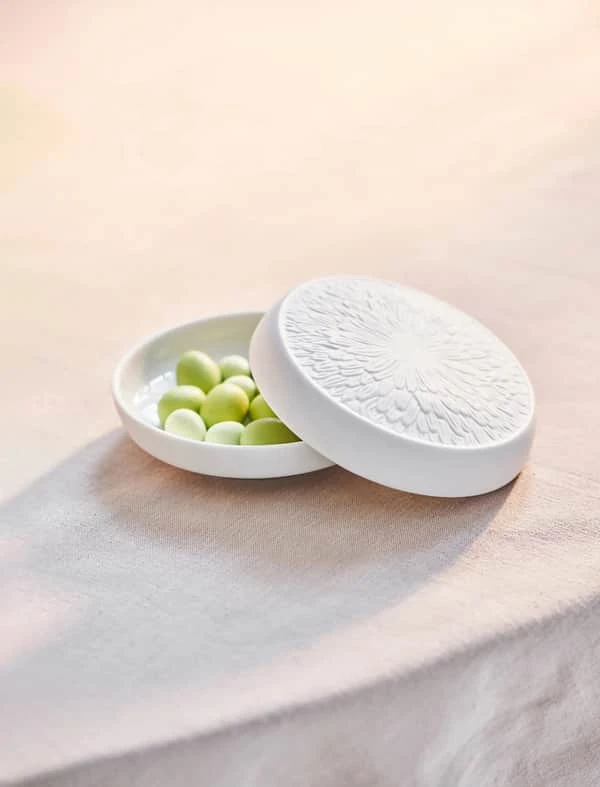 I anledningen af Dronning Margrethes 50-års regentjubilæum har Royal Copenhagen skabt denne smukke bonbonniere. Og for at ære vores allesammens ’Daisy’ er den udsmykket med den fineste Marguerit, som jo er dronningens foretrukne blomst og kælenavn.