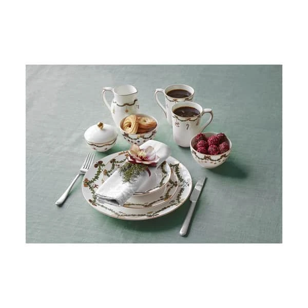 Stjerne Riflet serien fra Royal Copenhagen er stellet, hvor alt det bedste fra julen er samlet. Smukke guirlander hænger side om side med gaver og traditionelt julepynt – en klassiker i julen. Den smukke kollektion er skabt med inspiration i et stel, der blev produceret første gang i 1895, og i dag pryder Stjerne Riflet juleborde overalt i kongeriget.